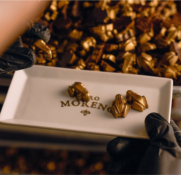 En el año 2012 tomé la firme decisión de vivir a Panamá y dedicarme a mi proyecto de vida. Tomé todos mis apuntes de chocolate, visité las fincas en Bocas del Toro y surgió la magia que envuelve este dulce y apasionado emprendimiento. Es así como en noviembre de 2013 nace Oro Moreno, el primer laboratorio de chocolatería artesanal que trabaja 100% con cacao panameño y con el propósito de vida de generar felicidad en el mundo a través de chocolate.