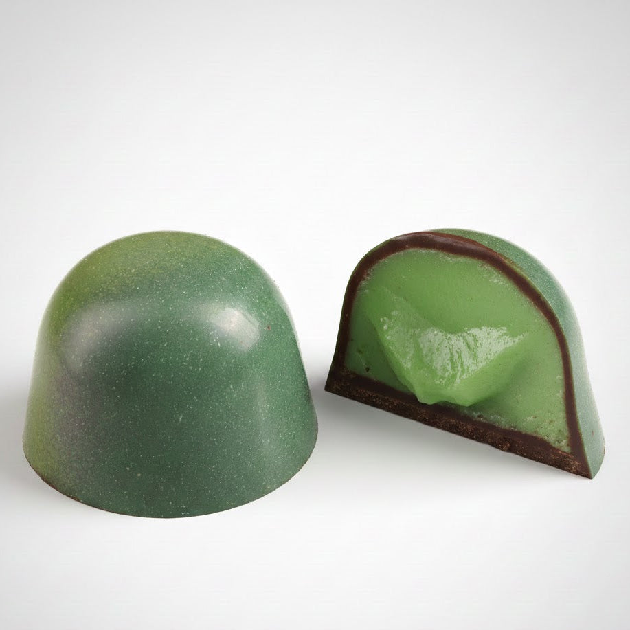Una fusión exquisita entre el arte del chocolate las notas cítricas y refrescantes de la hierba limón auténtica. El relleno cremoso, preparado con infusión de la planta natural, libera gradualmente sus aromas herbales y su frescura característica, creando un contraste perfecto con la intensidad del chocolate.