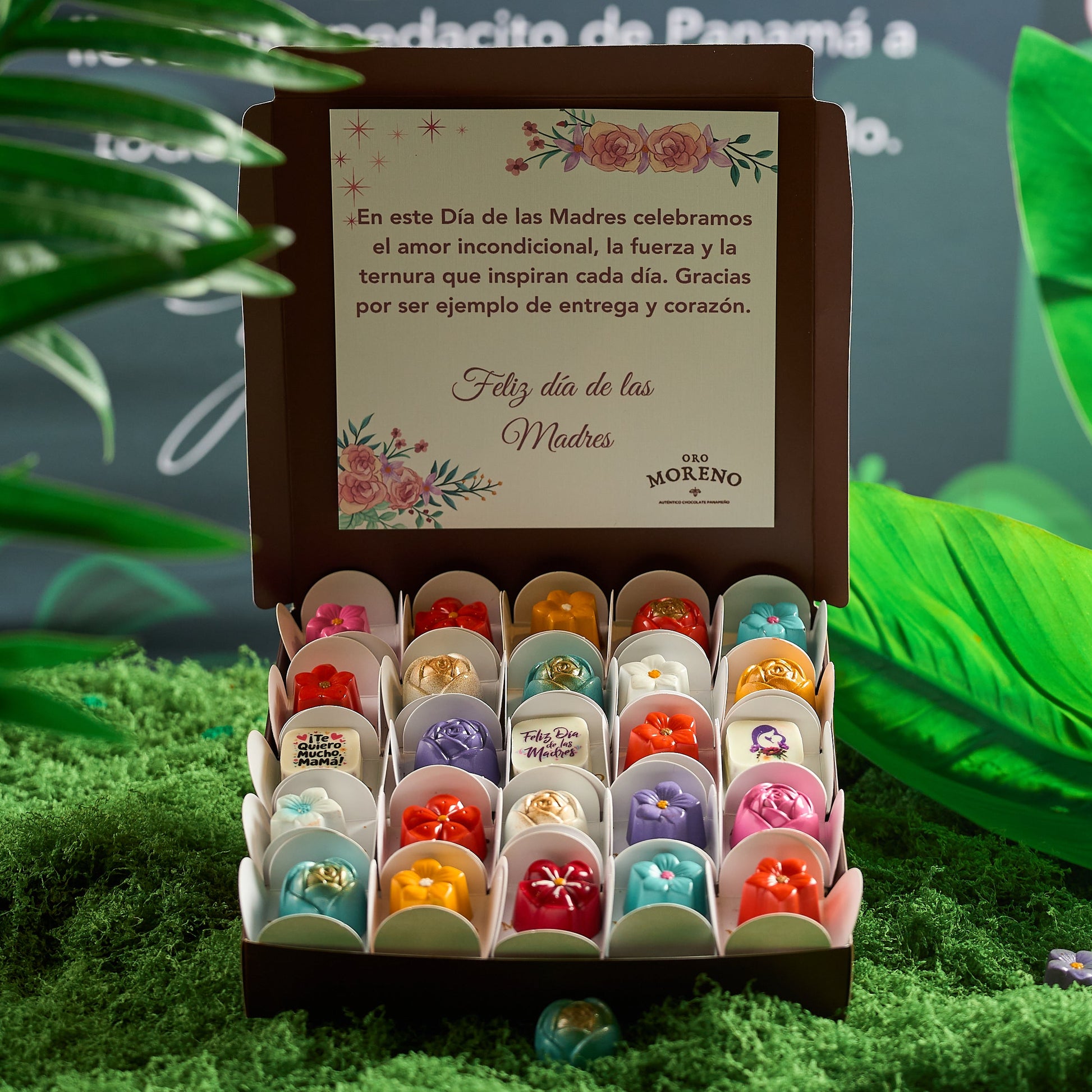 - Incluye 25 bombones variados de la colección “Celebra a mamá con amor y chocolate”